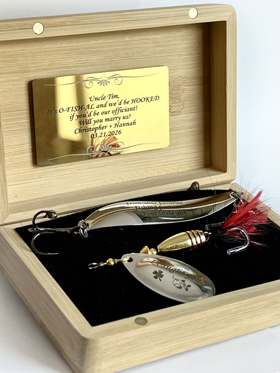 Custom Fishing lure gift Pike Bass bait Wooden box Birthday Wedding Gift